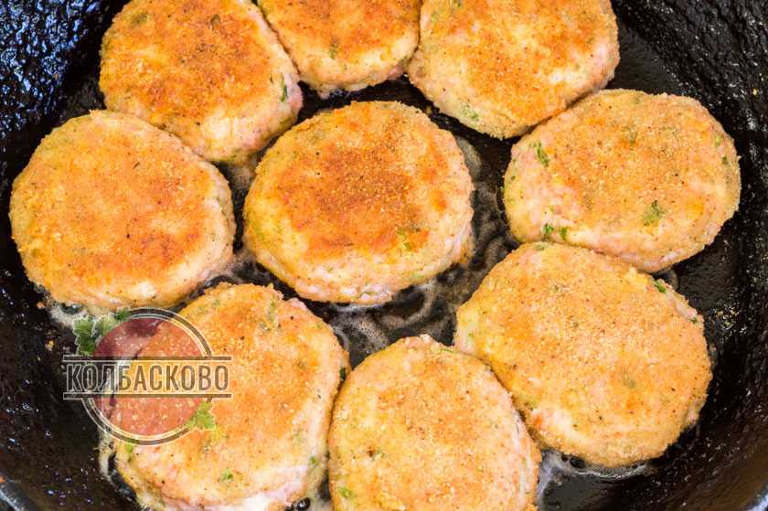 5. Выкладываем котлеты в кипящее масло максимально близко друг к другу. Жарим на среднем огне.