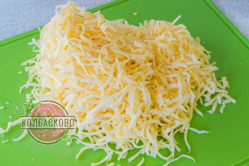 12. Сыр натираем на крупной терке и хорошенько присыпаем.