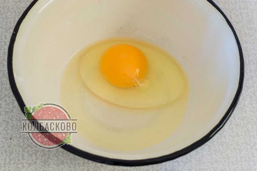 7. В отдельную посуду разбиваем яйцо. Взбиваем его просто вилкой до соединения белка и желтка.