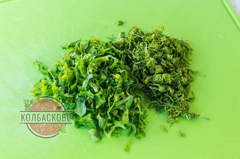 3. Зелень промываем, обсушиваем и мелко рубим ножом.