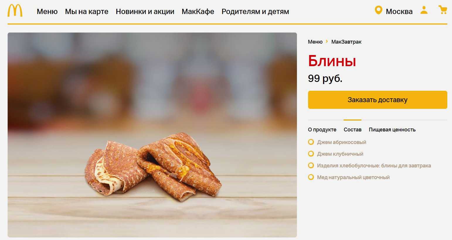 В России – блины на завтрак. Даже в «Хэппи Мил».