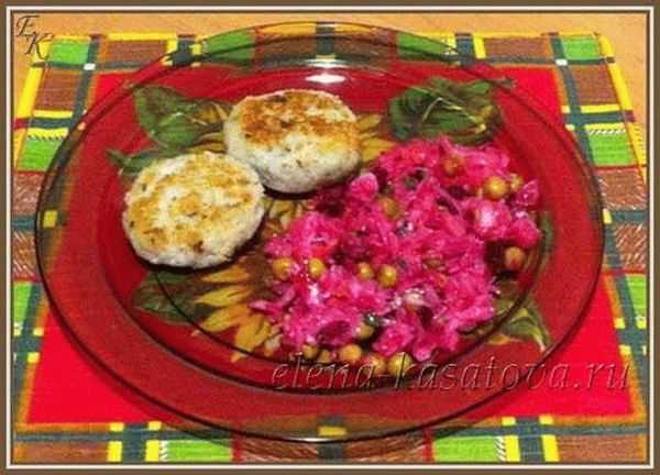 На гарнир к рыбным котлетам из щуки можно подать отварной картофель, рис или овощные салаты, к примеру винегрет.