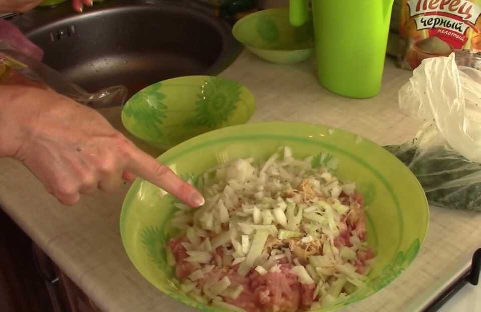 - Мелко нарежьте лук или пропустите его через мясорубку.