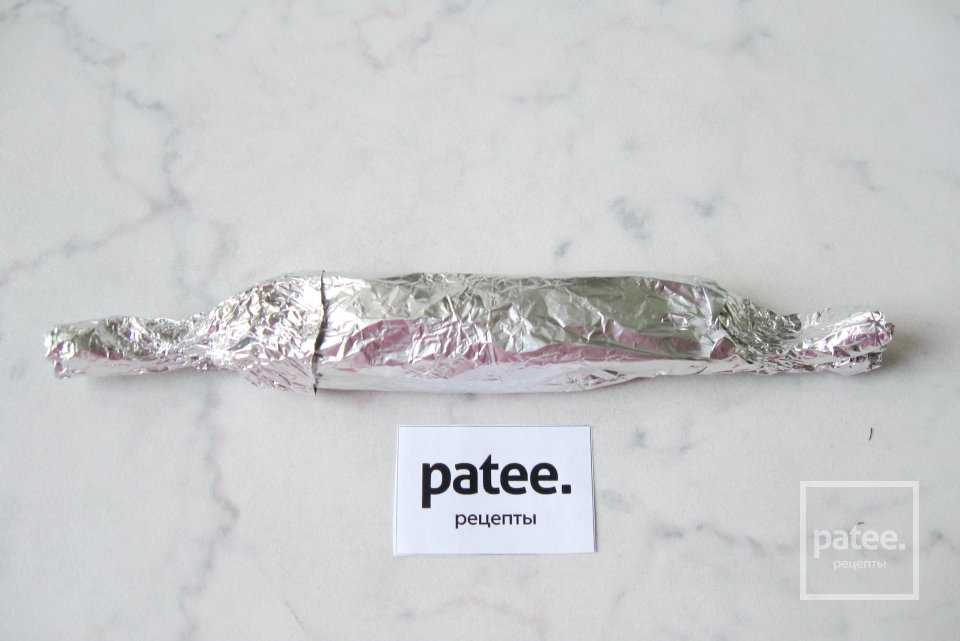 Завернуть сливочное масло с петрушкой в фольгу в виде цилиндра и отправить в морозильную камеру на 20 минут.