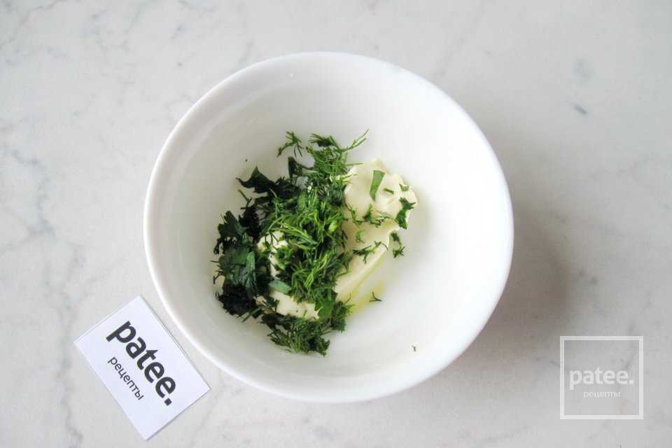 4. Зелень предварительно порубите ножом, и смешайте со слегка подтаявшим маслом.