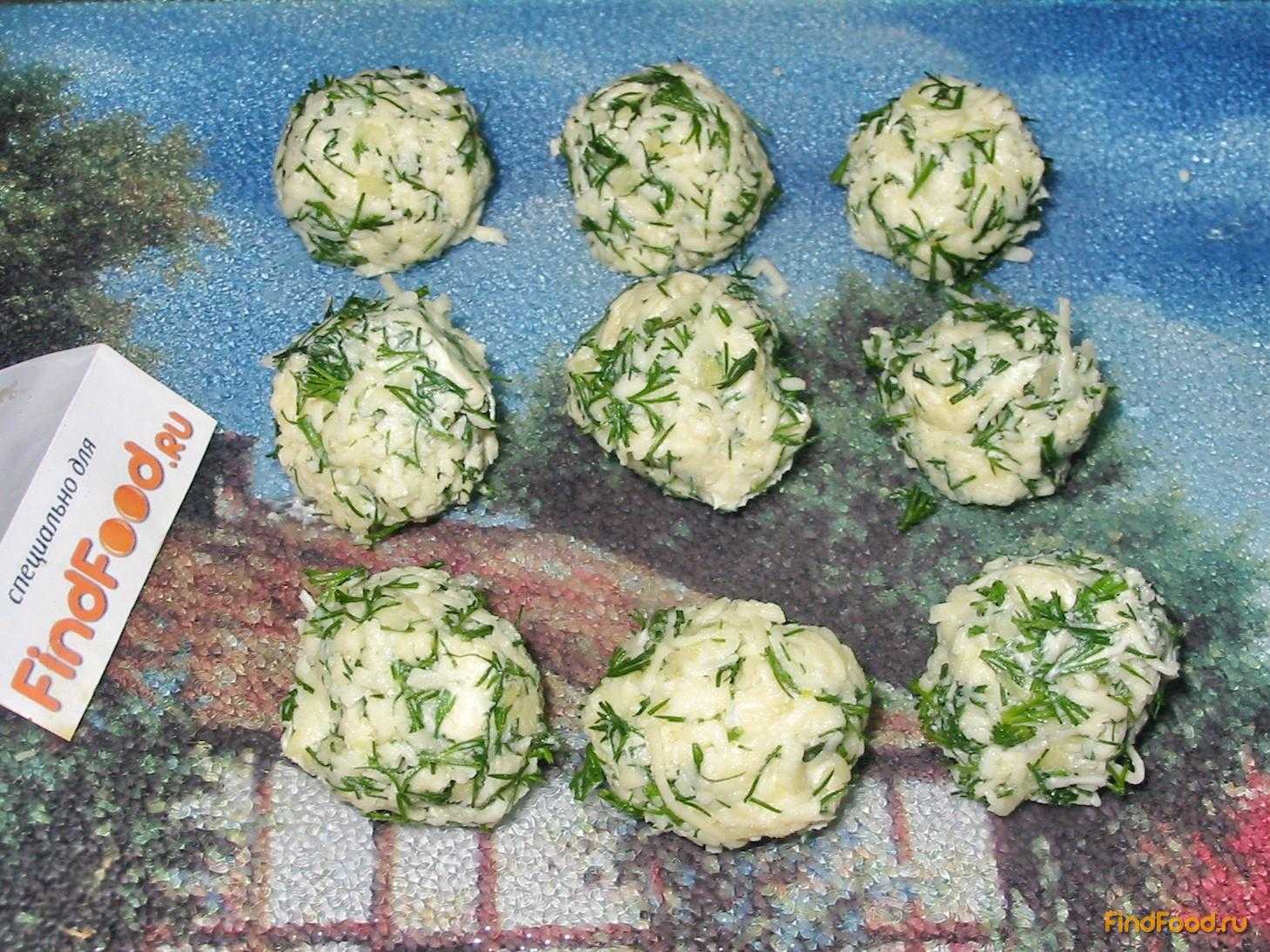 - Сформировать из полученной смеси лепешку, положить на нее 3-4 кубика сыра.