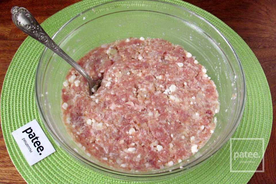 После этого хорошо отбиваем фарш, чтобы прочно соединить все ингредиенты.