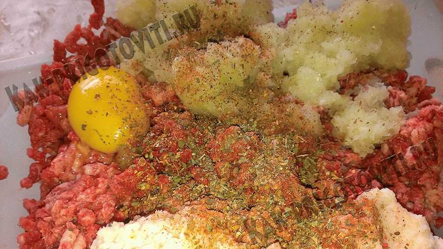 Фарш хорошо вымесите, чтобы соль и специи равномерно распределились.