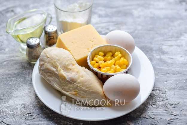 Итак, для приготовления салата с блинами из крахмала и курицей подготовить все продукты по списку.