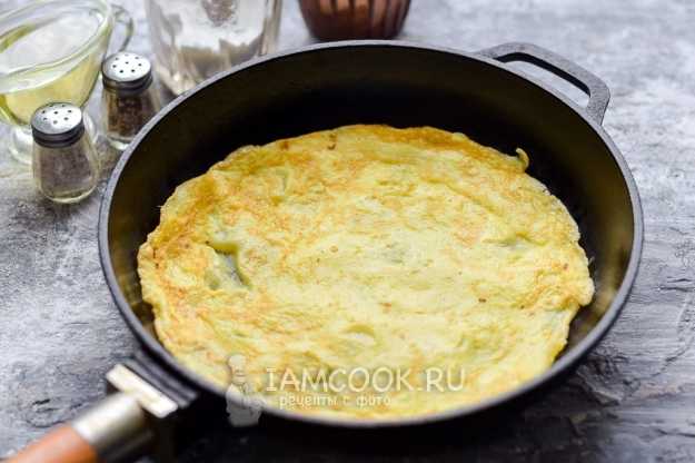 - Жарьте 1-2 минуты, затем аккуратно подденьте лопаткой или вилкой блин и переверните на другую сторону.