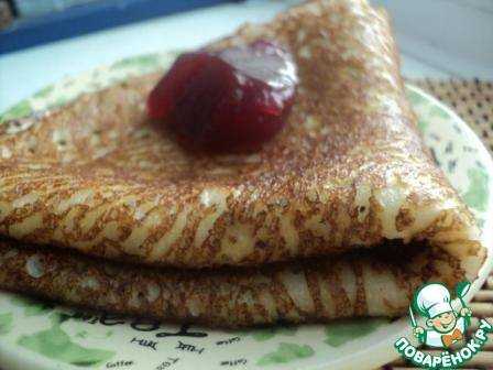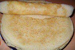 Блины жарятся обычным образом с двух сторон. Для них можно применять разнообразные начинки или подавать просто с мёдом или вареньем.