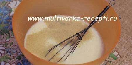 - Добавьте манку, доведите до однородной консистенции и оставьте на 15 минут.