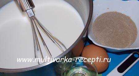 - Займемся блинами. Еще раз перемешайте жидкость, находящуюся в емкости, и влейте 350 миллилитров молока. Перемешиваем.