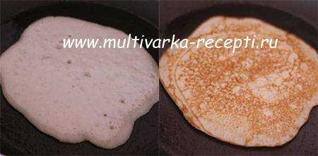 Из этих продуктов получается приблизительно 8 штук блинов. Способ их приготовления включает такие этапы: