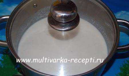 В первую очередь выкладываем на столешницу все нужные ингредиенты. Затем включаем две конфорки на средний огонь, на одну ставим чайник с очищенной водой, а на вторую сотейник с молоком. Разогреваем жидкости до 36–38 градусов Цельсия, так чтобы они были просто теплыми, но не горячими, и идем дальше.