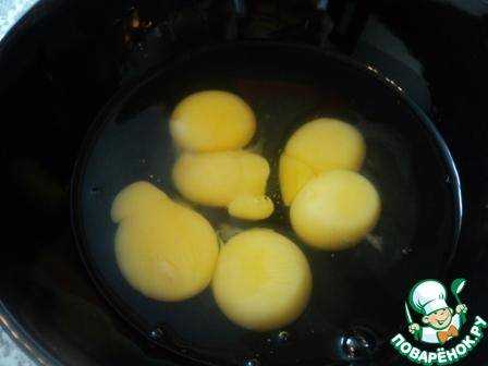 - Возьмите большую емкость и разбейте в нее три яйца.