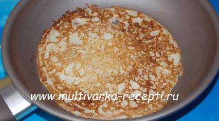 - Выпекайте блины до образования золотистой корочки с обеих сторон.