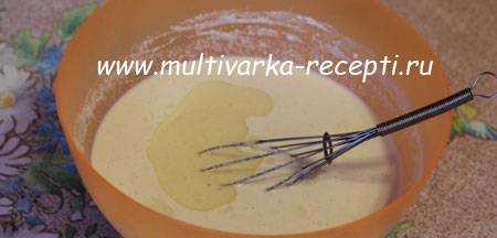 - Взбейте яйца и добавьте к жидким ингредиентам. Вновь всё хорошо взбейте.