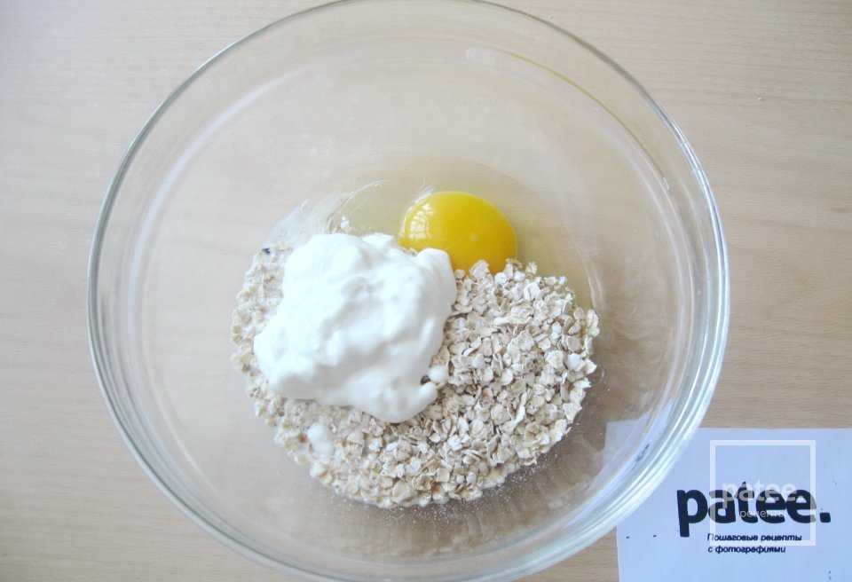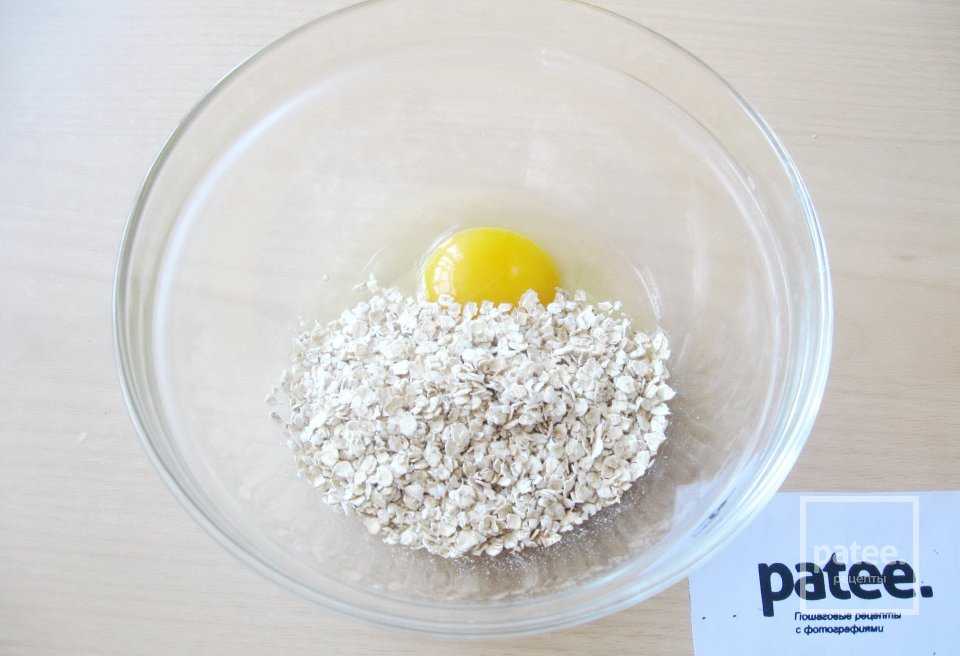 - Из яйца сделайте однородную массу, добавьте в хлопья;