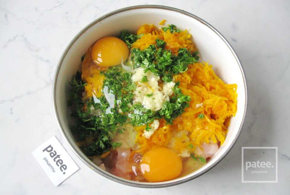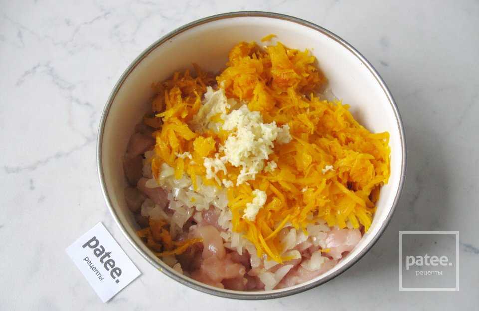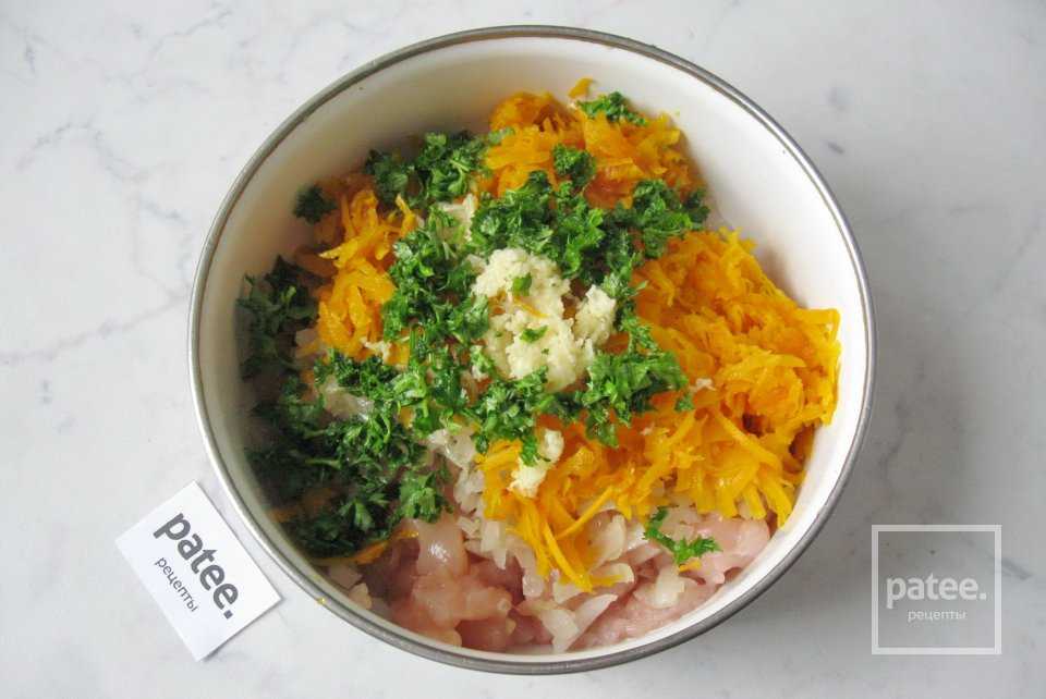 Описание рецепта — Куриные рубленые котлеты с тыквой:
