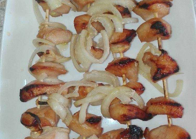 К столу шашлык из курицы подаём сразу, с пылу с жару. Приятного аппетита!
