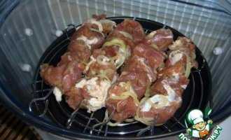 Способ приготовления №4 Вам понадобится следующий набор продуктов: телячья вырезка – 1,5 кг; репчатый лук – 3 шт.; кефир – 350 мл; приправа «Для шашлыка» — по вкусу;...