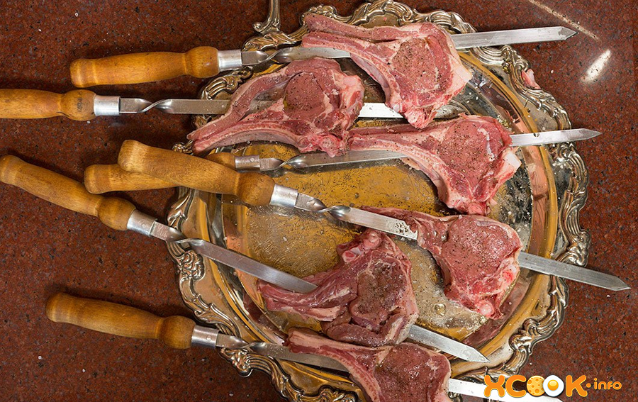 Ставить шампур на мангал следует исключительно на ребро. Такой способ жарки позволяет мясу получать жар от самих углей, а не от жаровни.