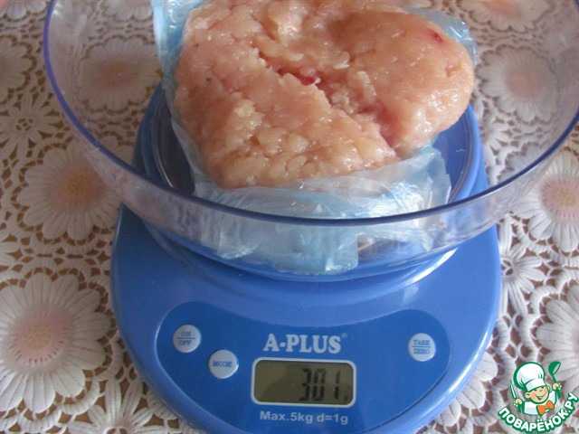 Взвешиваем 300 гр. фарша.
