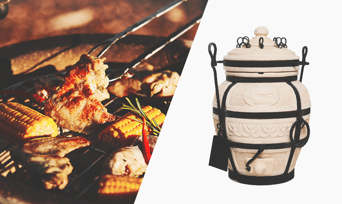Второй способ запекания — использование тандыра. Шашлык здесь не жарится от углей снизу, а запекается от нагретых стенок, из-за чего блюдо из тандыра получается сочнее и мягче классического. Для приготовления шашлыка насади мясо на шампуры, опусти в тандыр и засеки время. Обычно для шашлыка достаточно 20 минут, а за раз можно приготовить от 8 до 20 шампуров. Плюсом приготовления в тандыре является более равномерное пропекание, чем на гриле или мангале. Кроме того, при запекании в тандыре не образуются канцерогены, как это, например, происходит при обжаривании на открытом огне. В тандыре можно запечь курицу целиком или баранью ногу, выпекать лепешки и делать топленое молоко. Ты можешь выбрать небольшую модель тандыра, но мы рекомендуем варианты с толстыми стенками и широкой горловиной.
