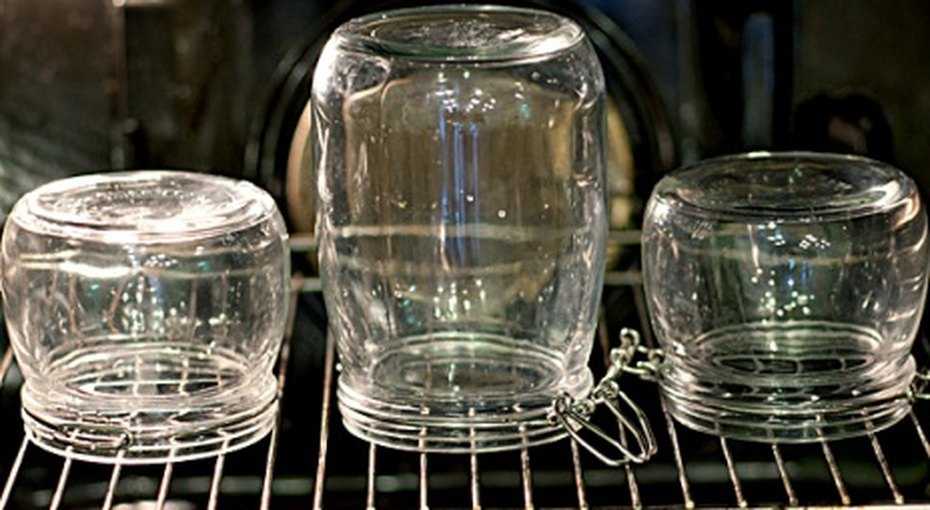 Стерилизация в духовом шкафу. Промытые банки расставляются на решетку духовки вверх дном и оставляются там до полного высыхания