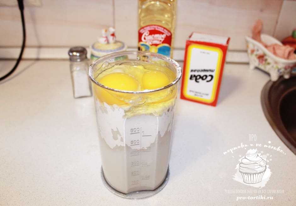 2. Влить яйца к кефиру и муке. Взбить блендером.