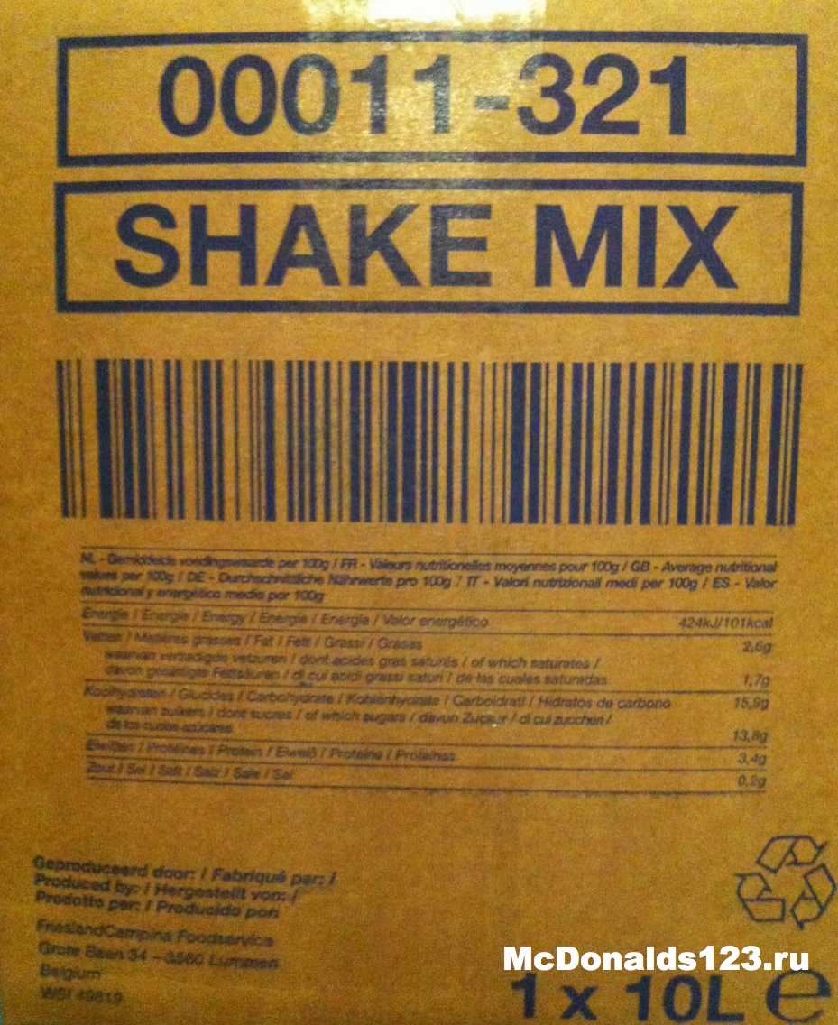 Приведу вам пример состав молочных коктейлей из McDonalds