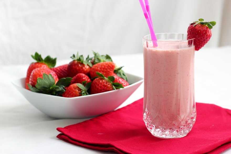 В летний сезон обязательно побалуйте себя этим чудесным молочным напитком из свежей клубники. На кружку молока возьмите полкружки ягод, вымытых и очищенных от хвостиков, и 1 банан. Смешайте в блендере банан и клубнику, добавьте молоко, взбейте. Если вы любите сладкое, не забудьте положить сахар.