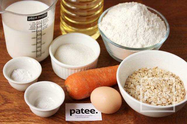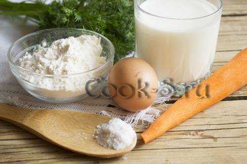 Для приготовления морковно-овсяных блинчиков нам понадобятся следующие ингредиенты: пшеничная мука, куриное яйцо, морковь, овсяные хлопья, молоко, сахар, сода пищевая, соль, масло подсолнечное рафинированное, сливочное масло для смазывания готовых блинчиков. Предварительно отвариваем морковь и остужаем её, а затем приступаем непосредственно к приготовлению блинов.