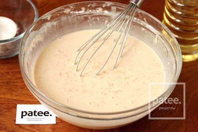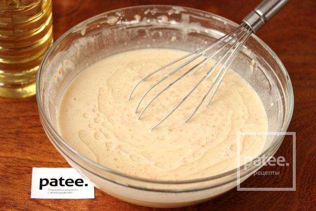 В конце вмешиваем в блинное тесто подсолнечное рафинированное или же растопленное и остывшее сливочное масло.