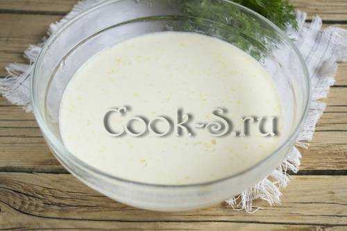 Яйца взбить в пышную пену, добавить соль и подсолнечное масло.