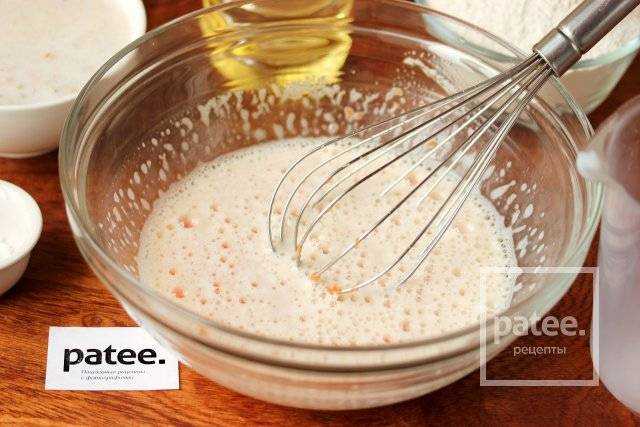 Перемешиваем смесь, вливаем оставшееся тёплое молоко и снова перемешиваем.