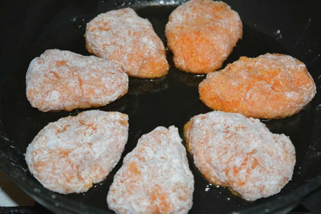 На сковороде довести до кипения растительное масло. Выложить морковные котлеты и обжарить их до красивой румяной и хрустящей корочки.