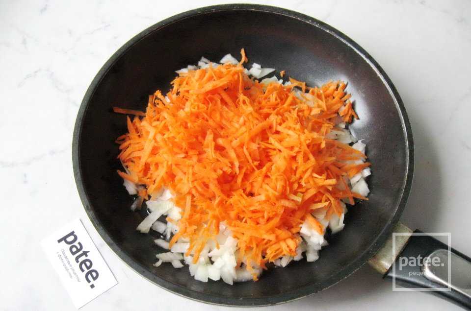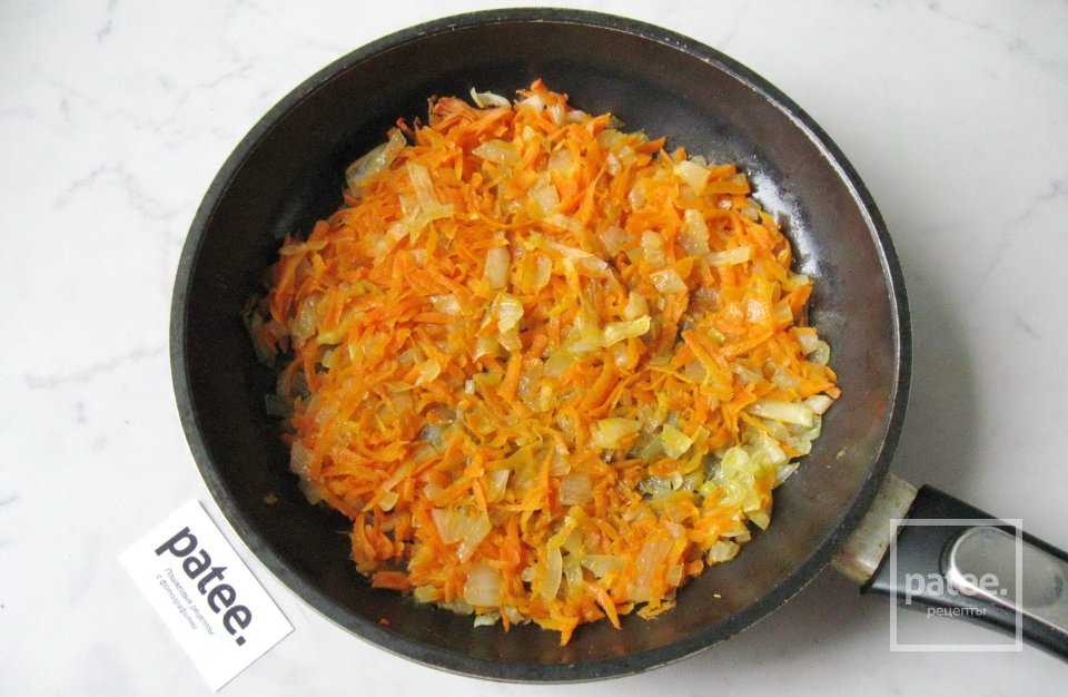 Тушим лук с морковью 10-15 минут на небольшом огне. Я добавляю немного воды, чтобы не лить много масла.