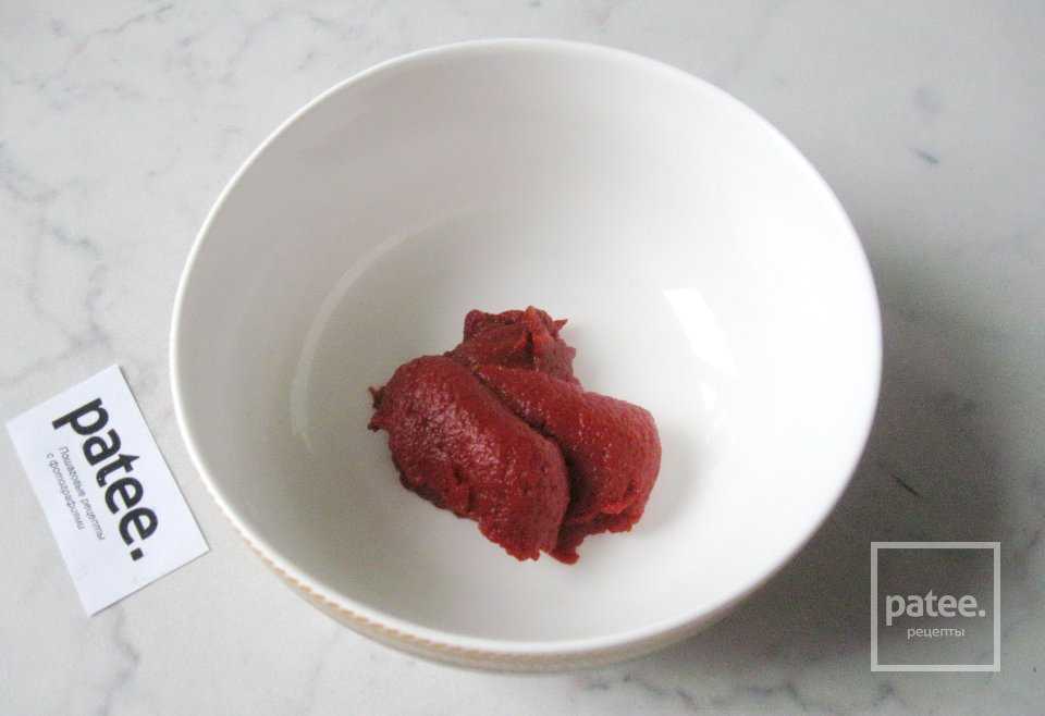 Делаем соус. В миску кладем томатную пасту.