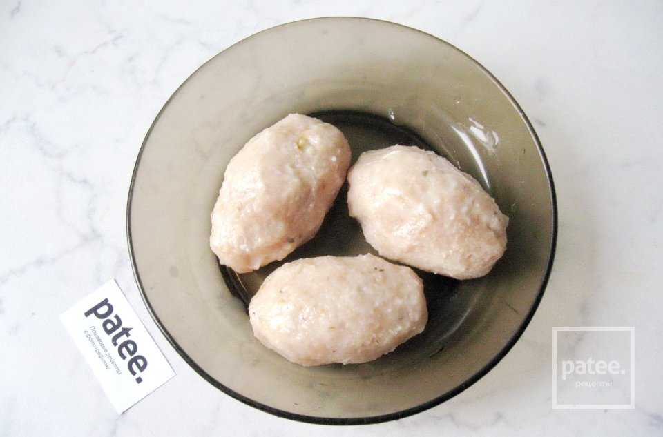 - Массу охлаждаем, затем начинаем формировать котлеты. Обмакиваем их сначала в белки, затем в панировочные сухари.