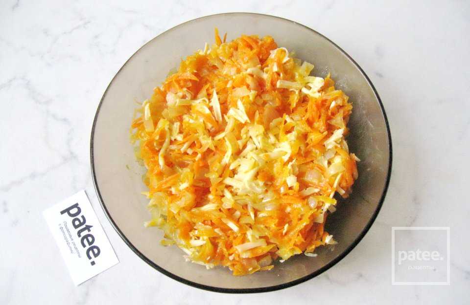 Перемешиваем тушеный лук, морковь и сыр. Начинка для котлет готова.