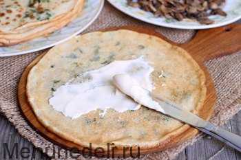 Пивные блины не заглушают вкус начинки, а только подчеркивают ее. Поэтому добавлять в них можно любое лакомство: зелень, ветчину, творог, грибы и многое другое.