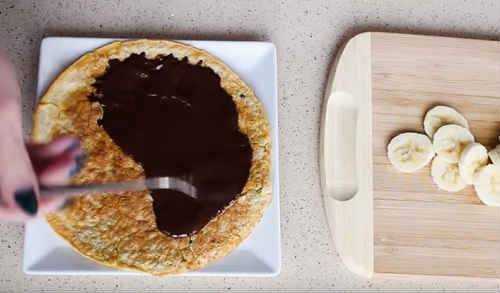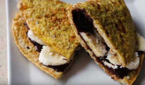 Овсяноблин с бананом может стать вкуснее, если в основное тесто добавить 20 грамм фруктового пюре. Еще при желании можно дополнить такой блин 4 дольками растопленного шоколада.