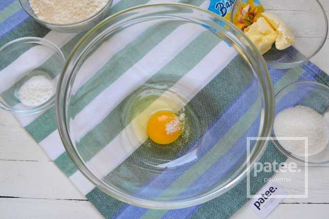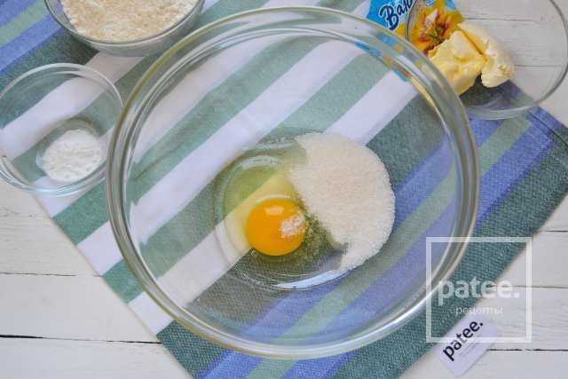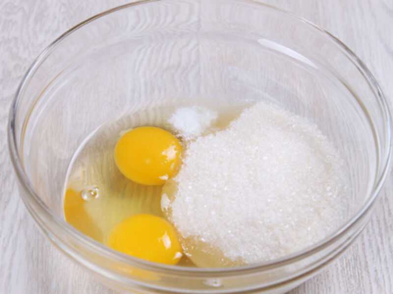 1. Возьмите глубокую емкость и взбейте в ней 2 яйца с сахаром.