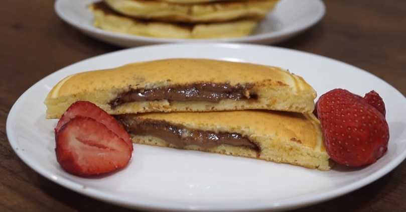 Если вам захотелось приготовить что-то оригинальное но в то же время что-то простое. Попробуйте приготовить панкейки с начинкой. В качестве начинки возьмем нутеллу.