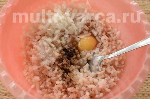 - В готовую массу вбивается яйцо, добавляются специи и все это хорошенько вымешивается.