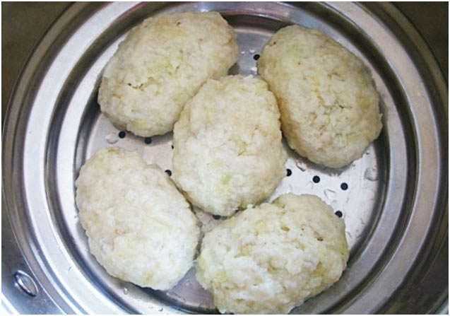 - Сформированные изделия сложить в пароварку, затем налить в чашу прибора воду и готовить двадцать минут.