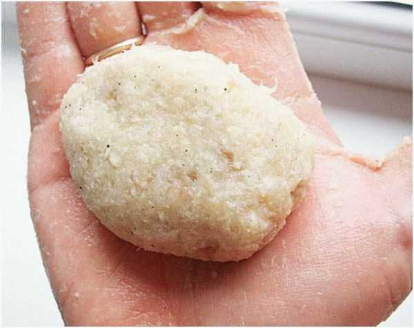 - Хлебный мякиш замачивают, затем хорошо его отжимают.
