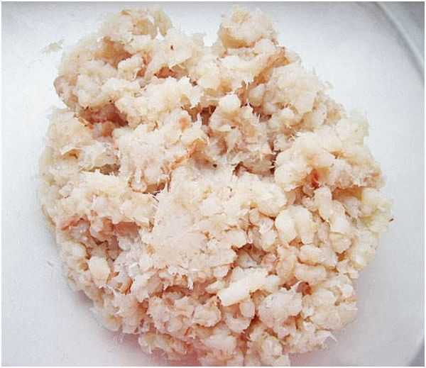 - Тушку рыбы помыть, освободить от шкурки, затем отделить филе от костей. Порезать на небольшие куски, заложить в мясорубку и перекрутить. Чтобы рыбная масса стала более нежной, рекомендуется перемолоть её еще один раз.